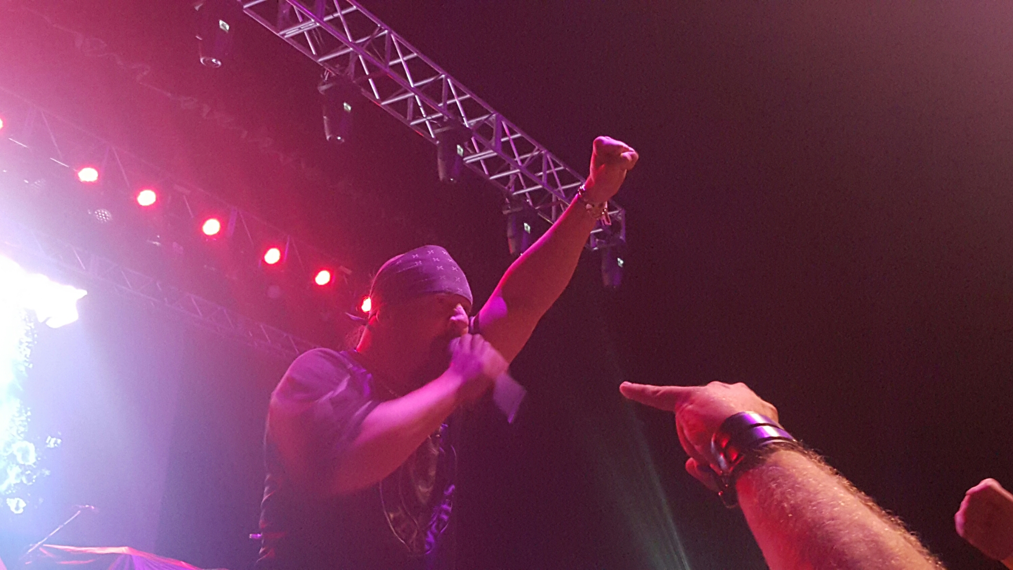 David Ellefson and Kiko Loureiro also walked up and down the stage as they played, heading back to their microphones in time to sing backing vocals. Even as they sang, they smiled and interacted with the crowd, throwing us picks in between songs. To say Kiko nailed Marty Friedman’s solos would be an understatement.