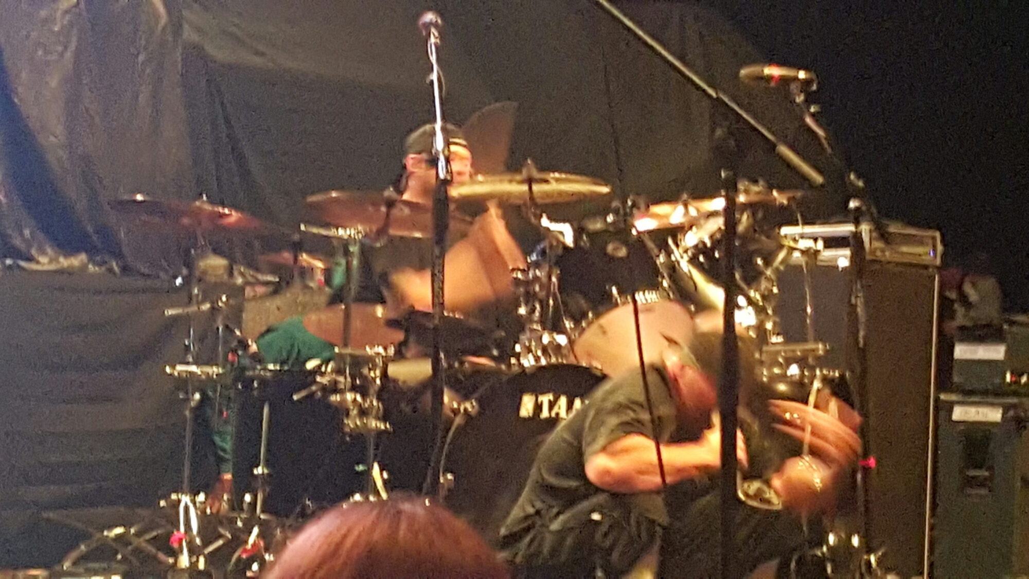 Chris Adler was situated atop a massive drum riser embedded into their futuristic stage prop. I couldn’t see his face much during the actual show, but the pictures I took show him smiling.
